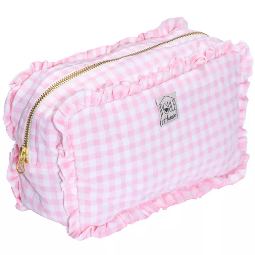 Grande trousse de toilette à froufrou – vichy rose (Bb & Co)